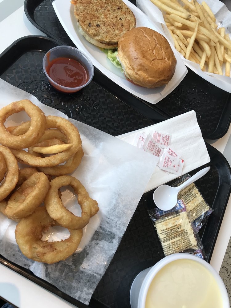 Seasoned ground white and dark turkey meat, grilled and served on a brioche bun with lettuce, tomatoes, and pickles Served with Fries