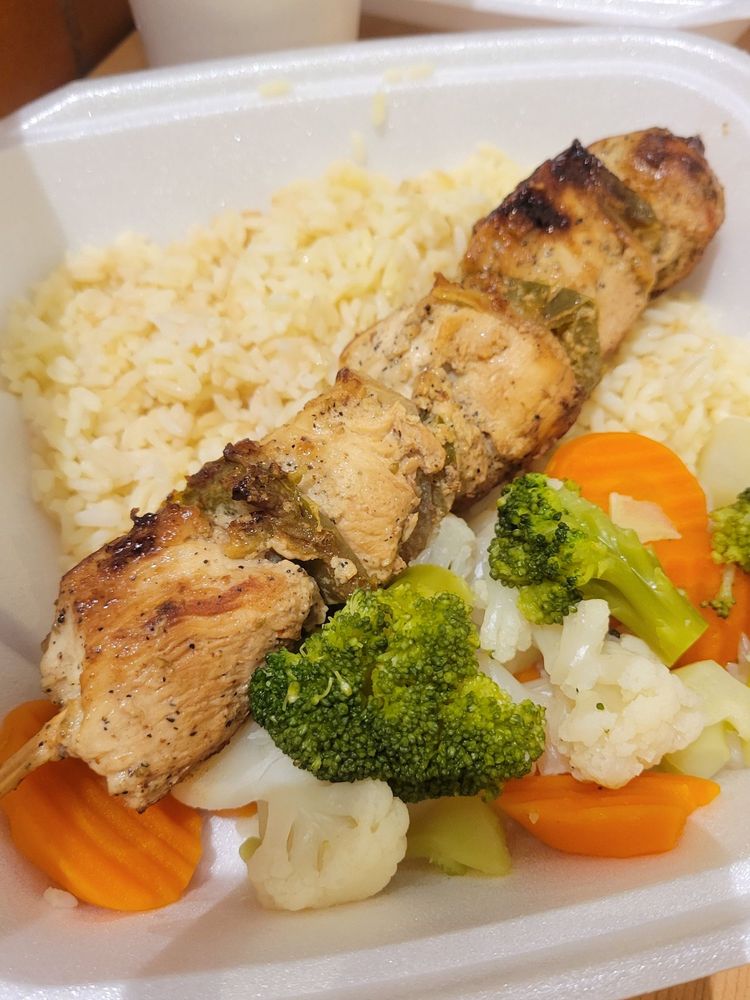 Grilled chicken breast with tomatoes, lettuce, onions and our homemade gyro sauce served in a grilled pita. Comes with Fries